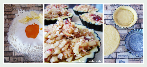 Bevor ihr den Teig aus dem Kühlschrank holt fettet die Mini-Tortelett-Förmchen ein und bestreut sie mit etwas Mehl (dann klebts beim Rausmachen nicht).