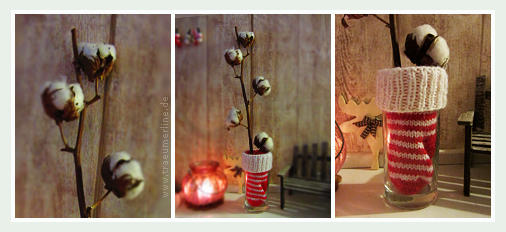 • Fäden vernähen, Socke ins Glas, Bündchen über’n Glasrand gestülpt und FERTIG