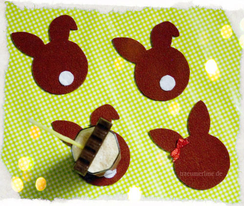 ✤ Schneidet mit einer wirklich guten Schere die Filzhasen aus und bessert ggf. mit einer Nagelschere die kniffeligen Stellen aus