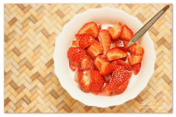 Genau: Gezuckerte Erdbeere in Milch. Yammi!