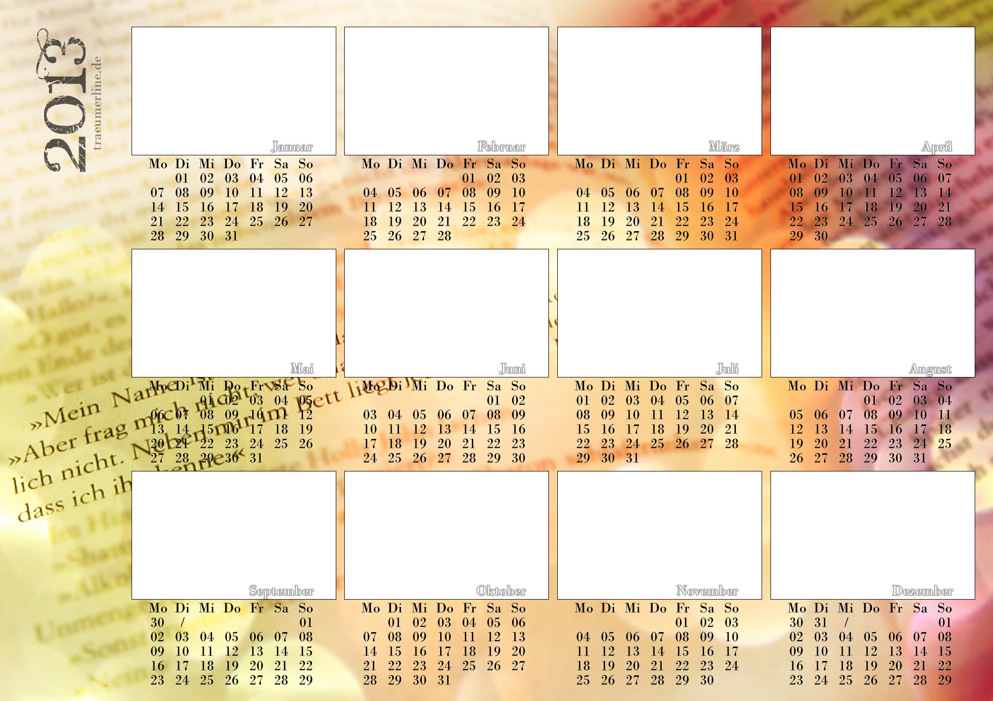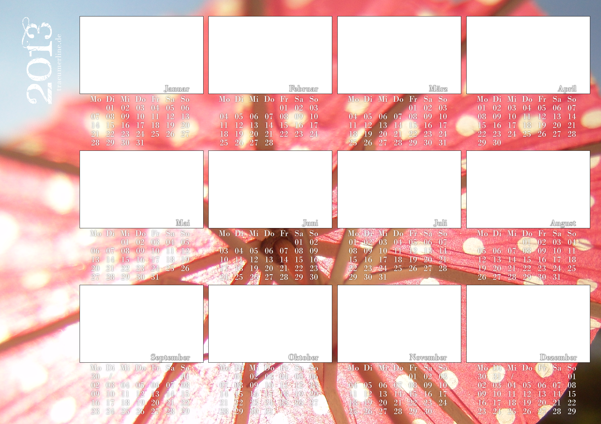 Es ist der 01.Januar 2013 – das neue Jahr beginnt und oh Schreck, du hast noch gar keinen Kalender?