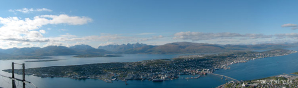 Tromsø liegt im hohen Norden Norwegens, etwa 350km nördlich vom Nordpolarkreis, und ist die Hauptstadt der Provinz Troms. Tromsø ist eigentlich eine Insel (Tromsøya, wo nicht nur wir wohnen sondern sich auch der Flughafen, die Uni und das Stadtzentrum befinden), nur breitet sich die Stadt auch auf die Nachbarinsel Kvaløya und das Festland aus ;). Sie ist die größte Stadt im Norden Norwegens mit gut 67.000 Einwohnern und flächenmäßig ist sie sogar die Stadt mit der zweitgrößten Fläche Europas (nach Rovaniemi in Finnland, wo der Weihnachtsmann wohnt). Achja, in diesem Jahr wurde Tromsø erst 216 Jahre alt. Ausserdem liebt es Tromsø (oder zumindest die Touristinfo) sich mit Superlativen wie “nördlichste Universität der Welt”, “nördlichste Brauerei der Welt” usw. zu rühmen ;).